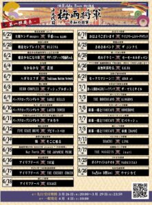 2026年07月07日(火)池袋Adm 未分類 19代目梅雨将軍2man series〜平和な将軍〜「シルバーラッシュ将軍」 出演:ビバラッシュ / 銀幕一楼とTIMECAFE(OA:後日解禁)開場 18:30 / 開演 19:00前売 ¥3 ,800+1D先行受付期間:3/26(木)20:00 〜 3/29(日)23:59まで一般発売:4/4(土)10:00 e+URL https://eplus.jp/sf/word/0000087962